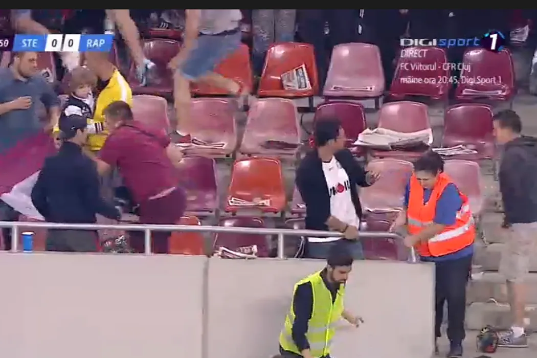 Bătaie generală pe Arena Națională! GALERIE FOTO | Imagini cu haosul creat de steliști și rapidiști. HORROR: răniții au fost cărați pe brațe