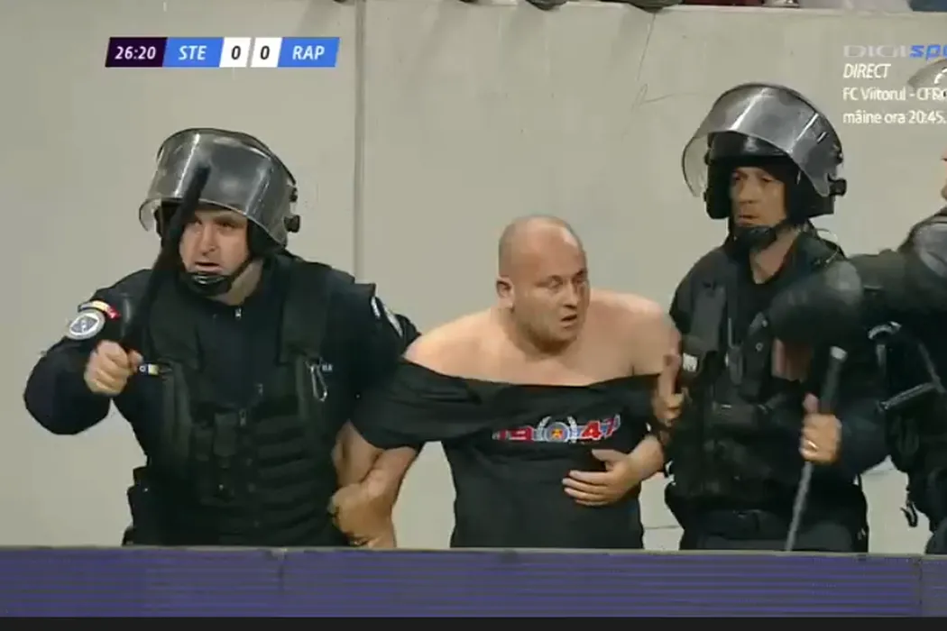 Bătaie generală pe Arena Națională! GALERIE FOTO | Imagini cu haosul creat de steliști și rapidiști. HORROR: răniții au fost cărați pe brațe