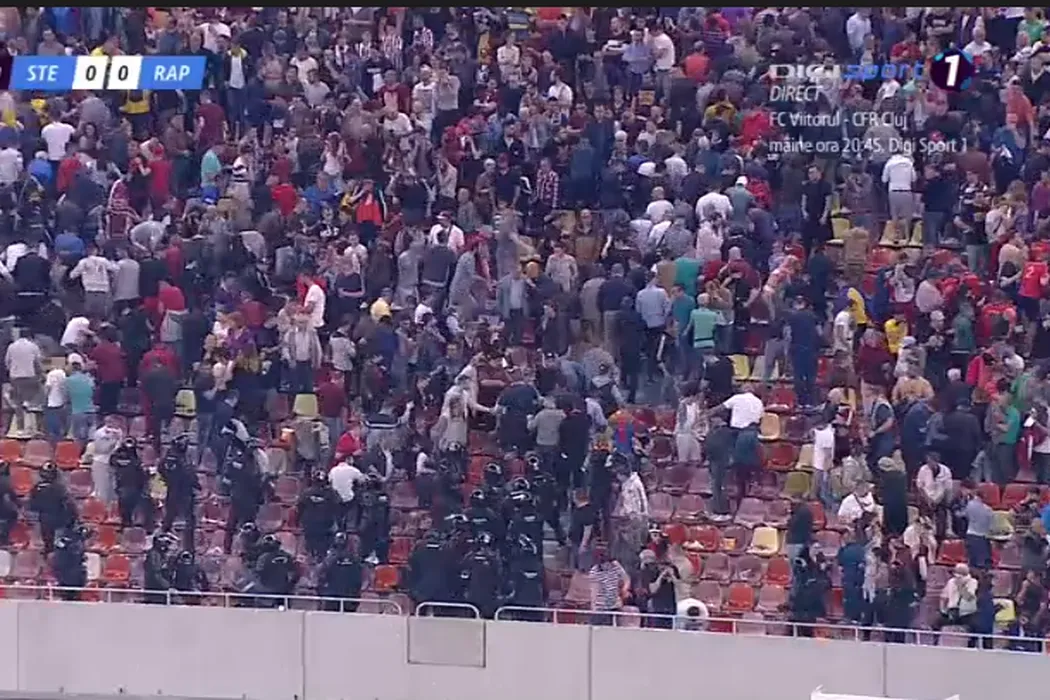 Bătaie generală pe Arena Națională! GALERIE FOTO | Imagini cu haosul creat de steliști și rapidiști. HORROR: răniții au fost cărați pe brațe