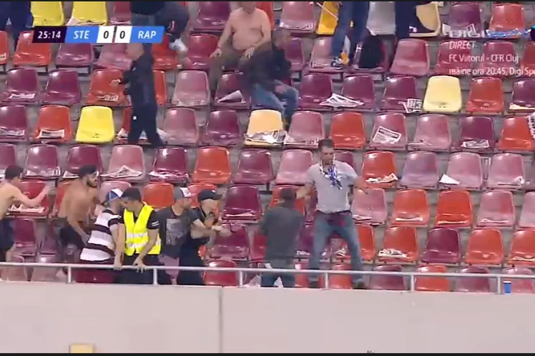 Bătaie generală pe Arena Națională! GALERIE FOTO | Imagini cu haosul creat de steliști și rapidiști. HORROR: răniții au fost cărați pe brațe