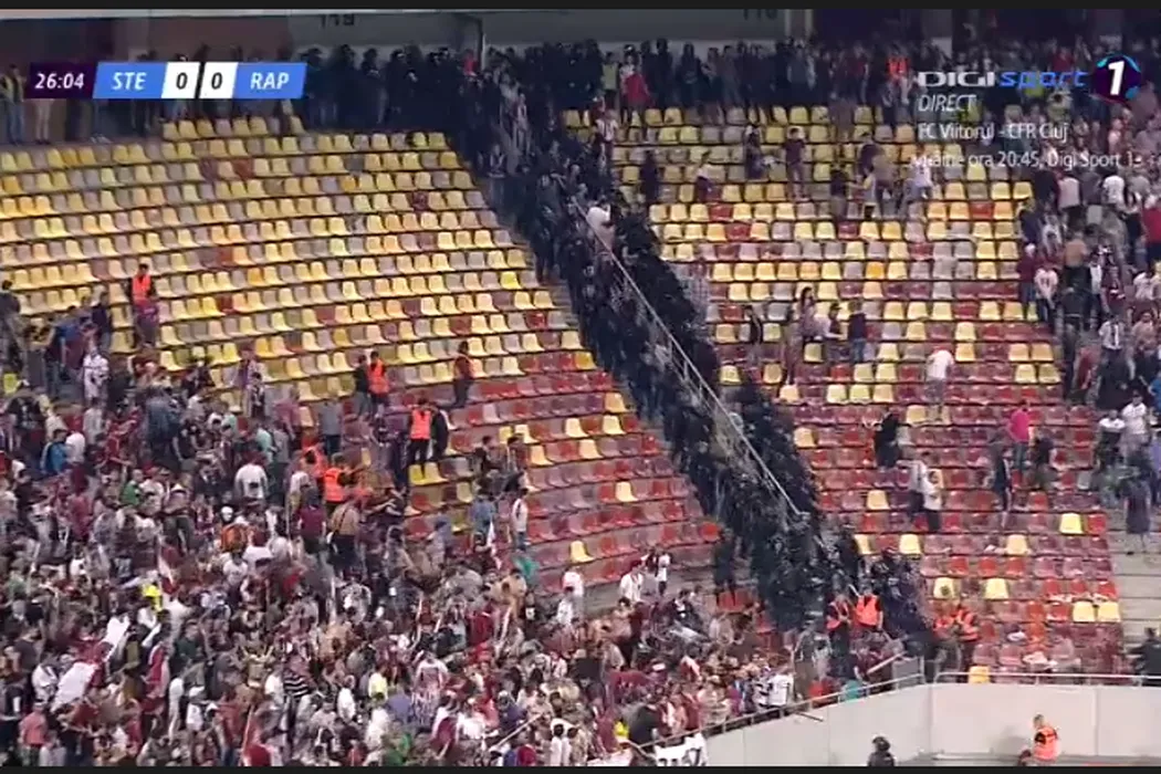 Bătaie generală pe Arena Națională! GALERIE FOTO | Imagini cu haosul creat de steliști și rapidiști. HORROR: răniții au fost cărați pe brațe