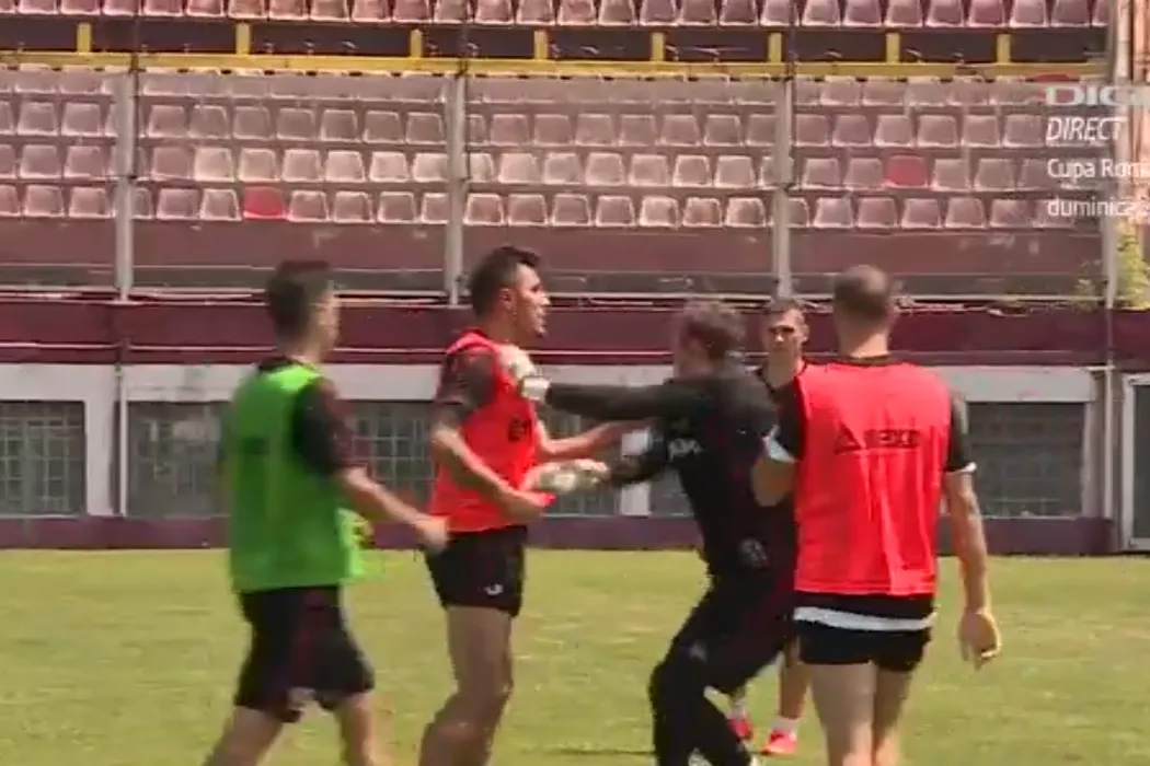 Bătaie între doi rapidiști în plin antrenament! Doru Bratu i-a dat un cap în gură portarului și a fost oprit cu greu de colegi. FOTO | Ce s-a întâmplat în Giulești