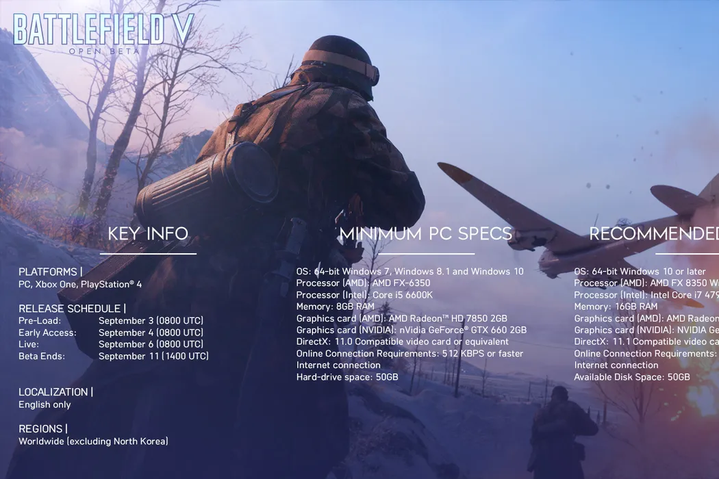 Battlefield V – program și cerințe de sistem pentru sesiunea Open Beta