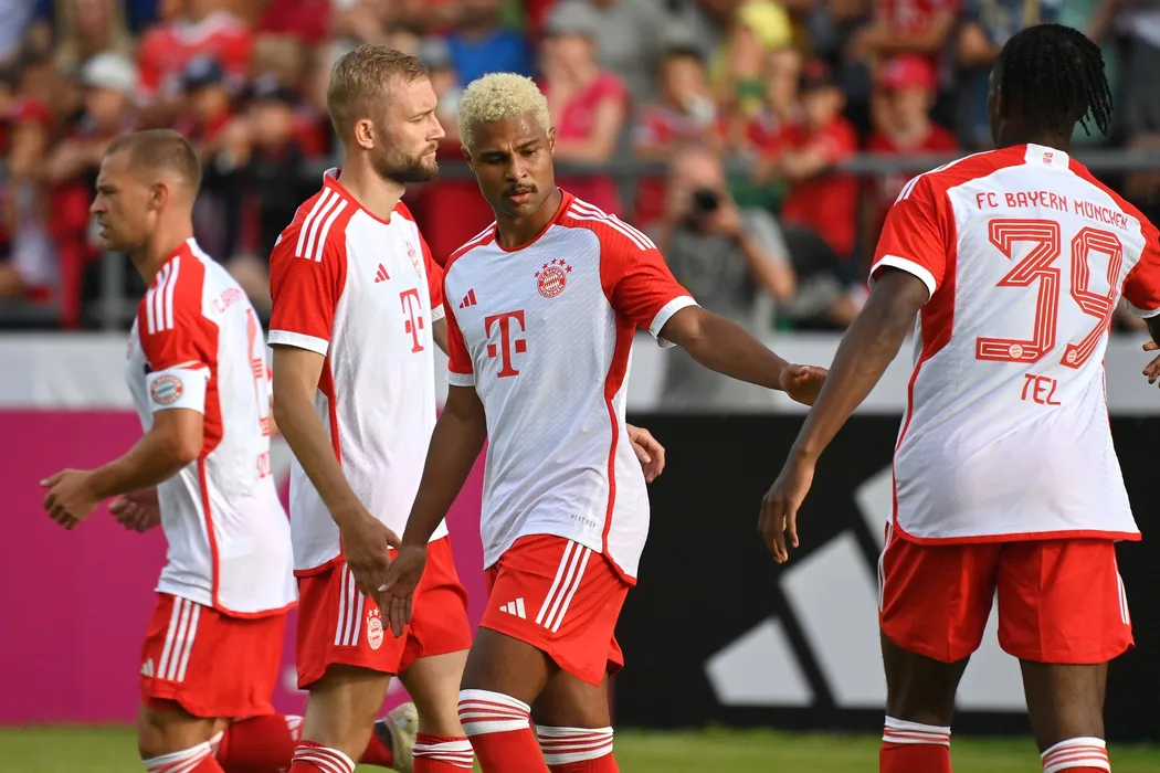 v.li:Joshua KIMMICH Bayern Muenchen, Konrad LAIMER Bayern Muenchen, Serge GNABRY FC Bayern Muenchen, Mathys TEL FCB, Jubel,Freude,Begeisterung,Aktion. Testspiel FC Bayern Muenchen - Rottach Egern 27-0 Trainingslager in Rottach Egern am 18.07.2023. Fussball 1. Bundesliga,Saison 2023/2024. *** f li Joshua KIMMICH Bayern Muenchen , Konrad LAIMER Bayern Muenchen , Serge GNABRY FC Bayern Muenchen , Mathys TEL FCB , Jubel,Freude,Begeisterung,Aktion Testspiel FC Bayern Muenchen Rottach Egern 27 0 Trainingslager in Rottach Egern am 18 07 2023 Fussball 1 Bundesliga,Saison 2023 2024,Image: 790048624, License: Rights-managed, Restrictions: , Model Release: no