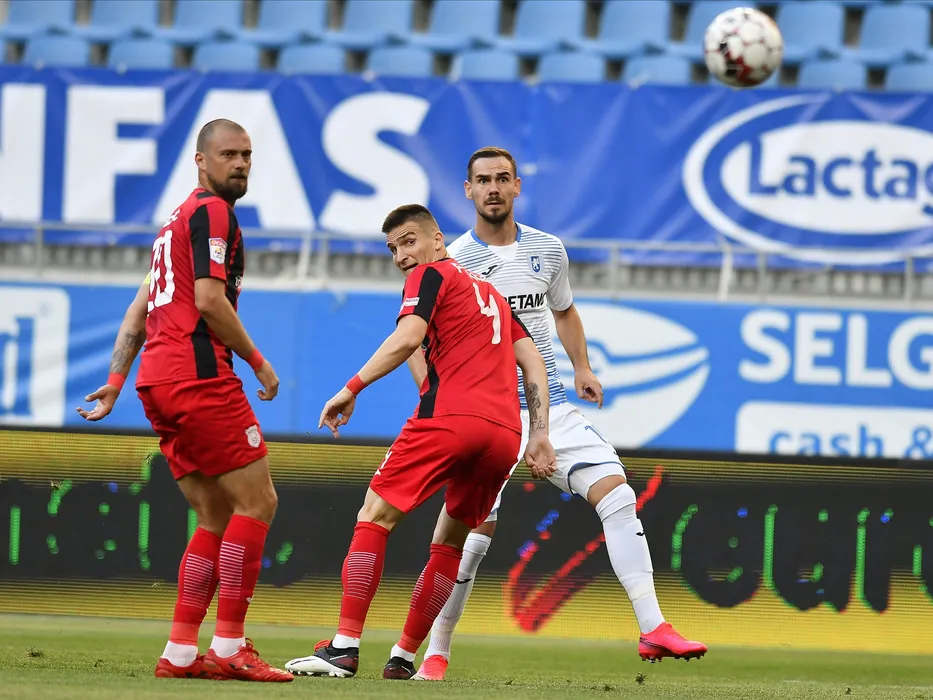 Gabriel Tamas, Daniel Graovac si Elvir Koljic in meciul de fotbal dintre Universitatea Craiova si Astra Giurgiu, contand pentru play-off-ul Ligii 1 Casa Pariurilor, disputat fara spectatori pe Stadionul Ion Oblemenco din Craiova, vineri 19 iunie 2020. © FOTO:Razvan Pasarica/SPORT PICTURES