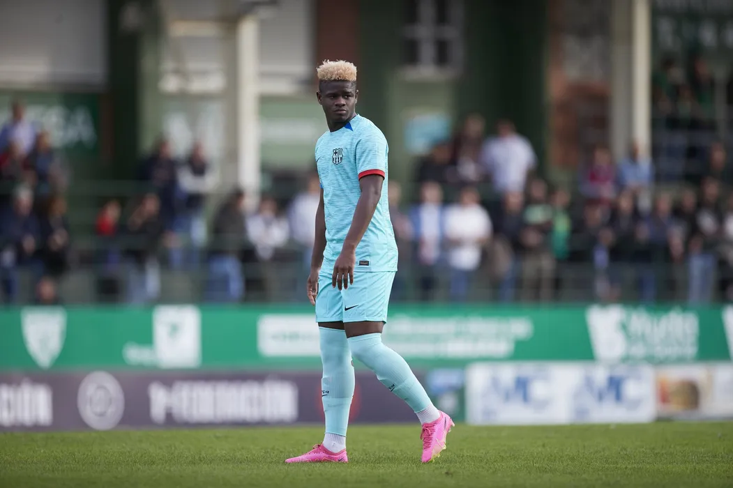 Sestao River Club v Barca Atletic - Primera Federacion Mikayil Faye of Barca Atletic looks on during the Primera Federacion match between Sestao RC and Barca Atletic at Las Llanas on October 22, 2023, in Sestao, Spain. Sestao Las Llanas Basque Country Spain RL_SRCvBARB_004 Copyright: xRicardoxLarreinax,Image: 849289122, License: Rights-managed, Restrictions: Credit images as "Profimedia/ IMAGO", Model Release: no