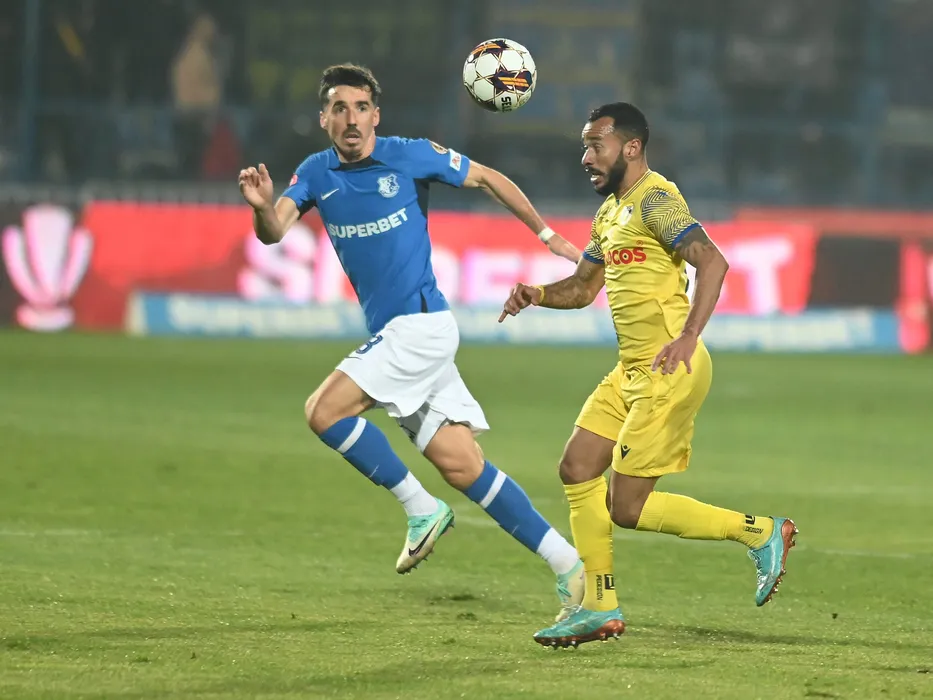 Andrei Viorel Artean si Jair Tavares Silva in meciul de fotbal dintre Farul Constanta si Petrolul Ploiesti, contand pentru Superliga Superbet, desfasurat pe Stadionul central al Academiei Gheorghe Hagi din Ovidiu, duminica 10 decembrie 2023. © FOTO:Razvan Pasarica/SPORT PICTURES