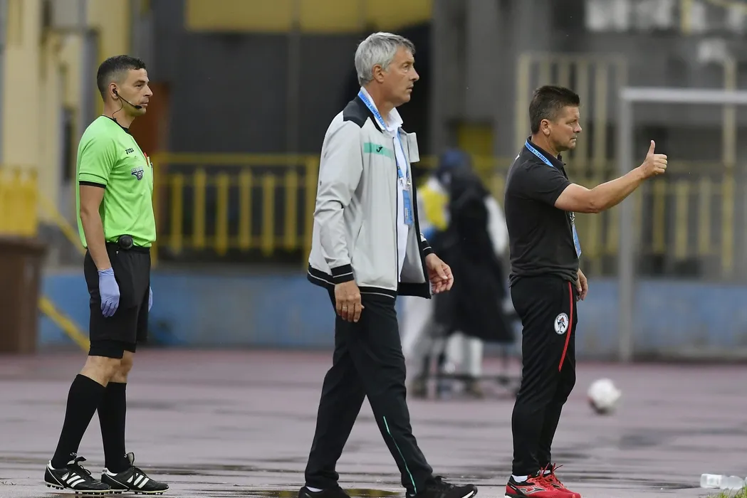Florin Andrei, Cristiano Bergodi si Dusan Uhrin in meciul de fotbal dintre Gaz Metan Medias si Universitatea Craiova, contand pentru play-off-ul Ligii 1 Casa Pariurilor, disputat fara spectatori pe Stadionul Municipal din Medias, vineri 3 iulie 2020. © FOTO:Razvan Pasarica/SPORT PICTURES