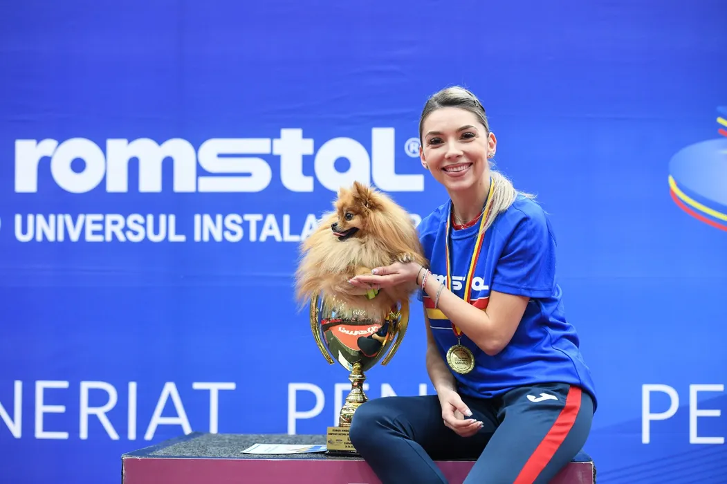 Bernadette Szocs a cucerit medalia de aur la toate cele trei categorii de la Campionatele Naționale de tenis de masă! A sărbătorit inedit: și-a pus câinele în Cupă! FOTO