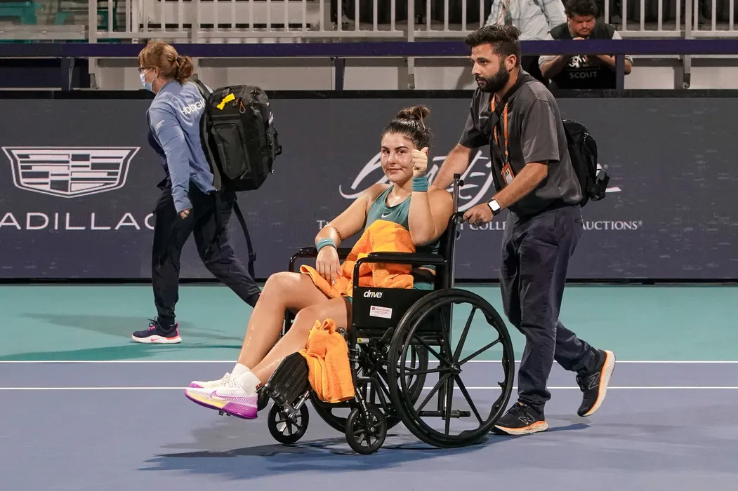 Bianca Andreescu, accidentare horror la Miami Open! A izbucnit in lacrimi si a iesit de pe teren in scaun cu rotile: „Nu am simtit asa durere in viata mea!” | VIDEO