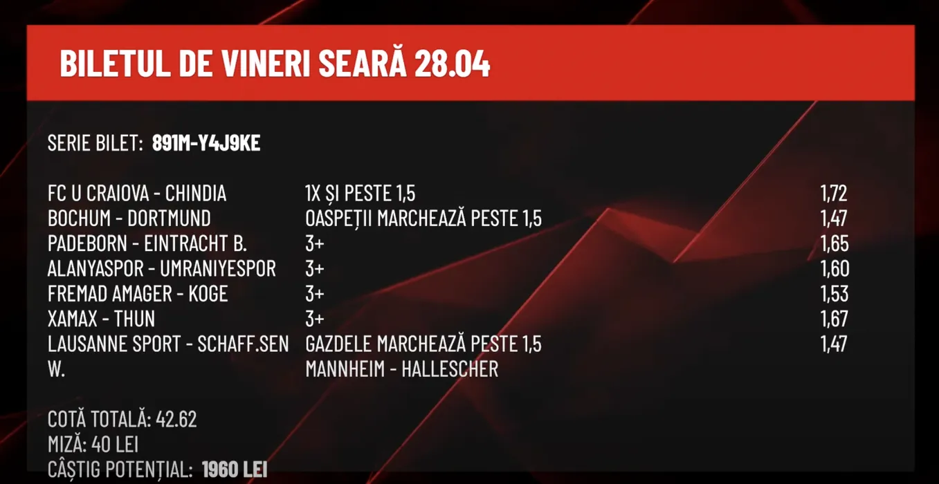 Biletul serii de vineri, oferit de Liviu Chiriță, cotă totală 42,62 din 8 evenimente! Ce pont a dat la partida etapei din Superliga | VIDEO PARIOLOGIA