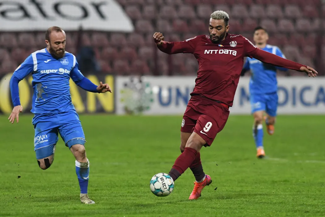 Billel Omrani (D), de la CFR Cluj, lupta pentru balon cu Sorin Busu (S), de la CSM Politehnica Iasi, in meciul de fotbal din etapa a XXVII-a a Ligii 1, disputat pe stadionul Dr. Constantin Rădulescu din Cluj-Napoca, duminica, 14 martie 2021. FLAVIU BUBOI / MEDIAFAX FOTO