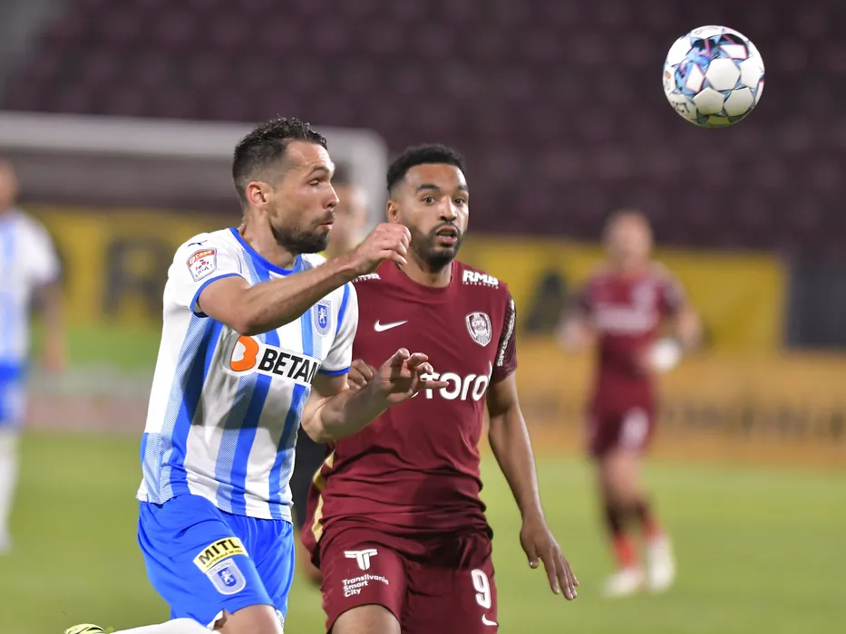 Valerica Marius Gaman si Billel Abdel Slem Omrani in meciul de fotbal dintre CFR Cluj si Universitatea Craiova, contand pentru Play-off-ul Ligii 1 Casa Pariurilor, desfasurat pe Stadionul CFR Dr. Constantin Radulescu din Cluj Napoca, duminica 15 mai 2022. © FOTO:Razvan Pasarica/SPORT PICTURES