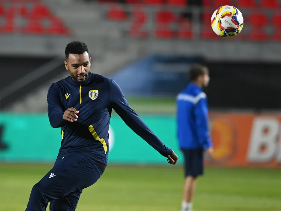 Abdel Slem Billel Omrani la incalzire in pauza meciului de fotbal dintre Chindia Targoviste si Petrolul Ploiesti, contand pentru Cupa Romaniei Betano, desfasurat pe Stadionul Eugen Popescu din Targoviste, marti 31 octombrie 2023. © FOTO:Razvan Pasarica/SPORT PICTURES
