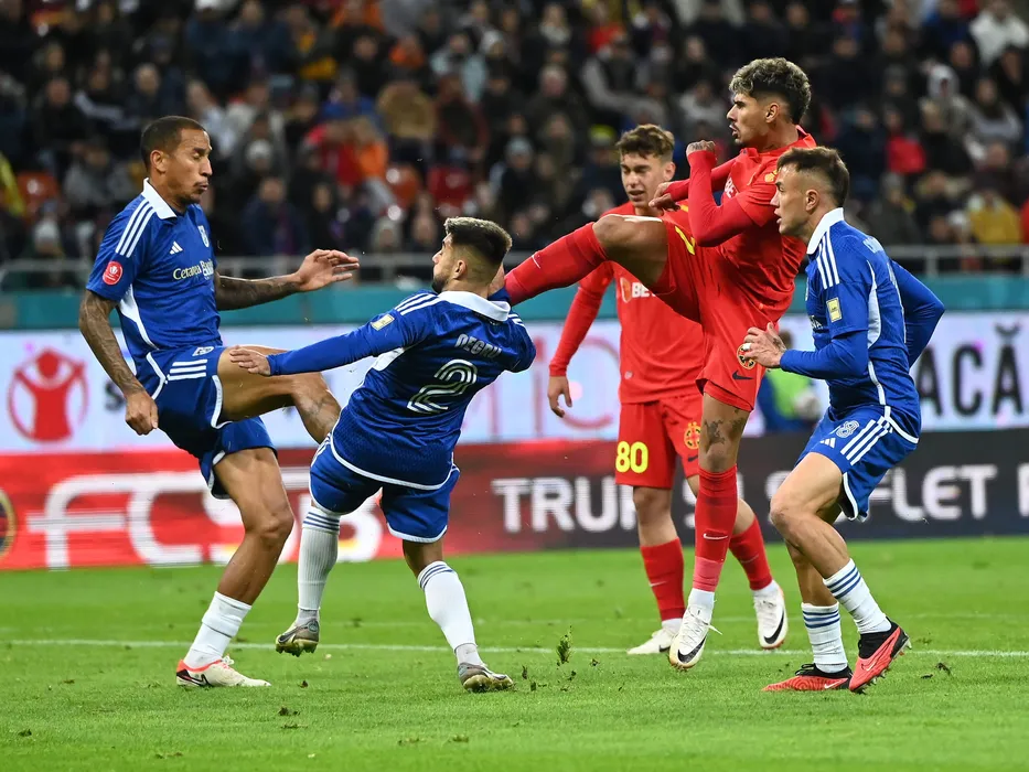 Leo Sebastien Lacroix, Radu Alexandru Negru, Florinel Teodor Coman si Gabriel Carlos Compagnucci in meciul de fotbal dintre FCSB si FC U Craiova, din cadrul Superligii Superbet, desfasurat pe Arena Nationala din Bucuresti, duminica 12 noiembrie 2023. © FOTO:Razvan Pasarica/SPORT PICTURES