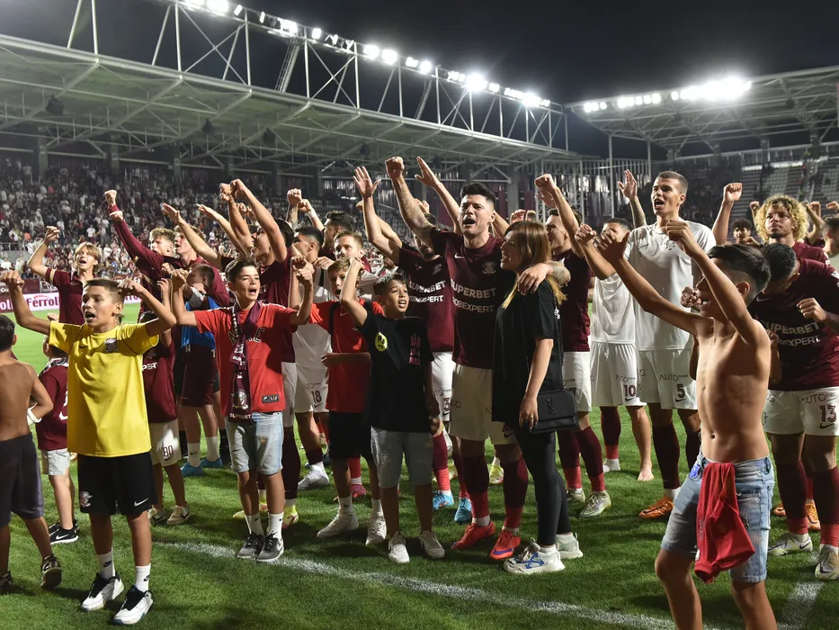 Fotbalistii rapidisti in frunte cu Cristian Ionut Sapunaru saluta galeria dupa meciul de fotbal dintre Rapid Bucuresti si FCSB, contand pentru Superliga Superbet, desfasurat pe Stadionul Rapid Giulesti din Bucuresti, duminica 24 iulie 2022. © FOTO:Razvan Pasarica/SPORT PICTURES