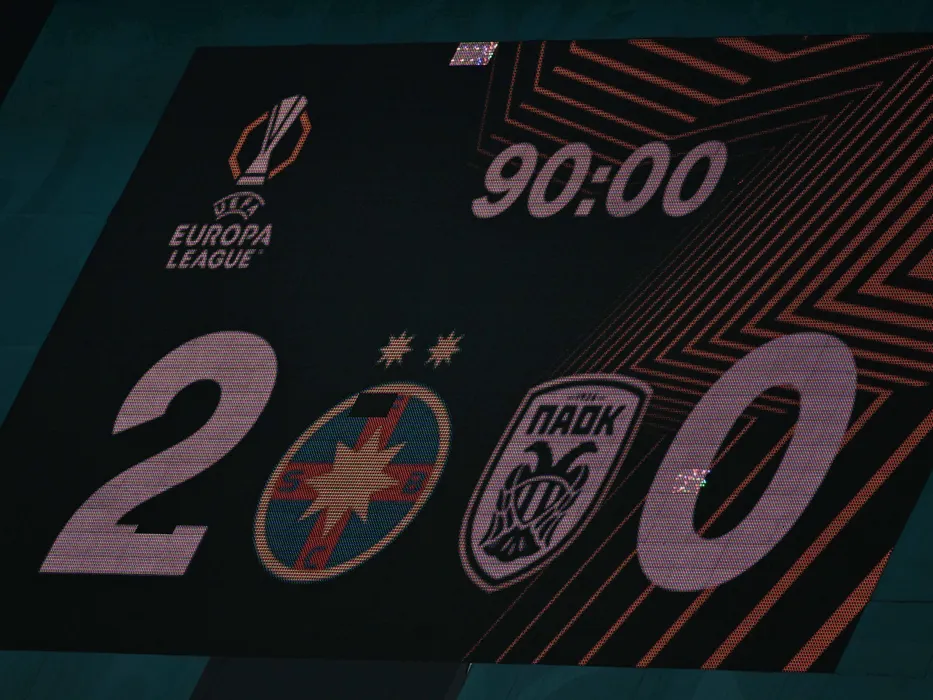 Tabela de marcaj după meciul de fotbal dintre FCSB si PAOK Salonic, din cadrul UEFA Europa League, desfasurat pe Arena Nationala din Bucuresti, joi 20 februarie 2025. © FOTO:Razvan Pasarica/SPORT PICTURES