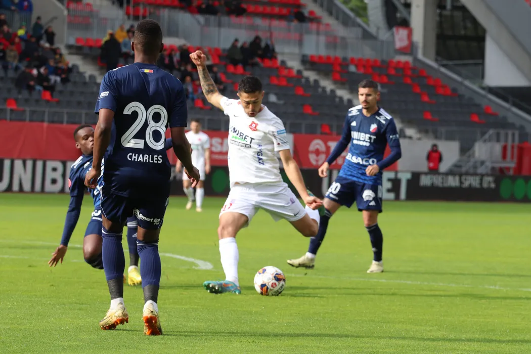 Gabriel Cristian Iancu în meciul de fotbal dintre AFC Hermannstadt Sibiu si FC Botoșani, contând pentru Superliga Superbet Play-Out, desfășurat pe Stadionul Municipal din Sibiu, vineri 19 aprilie 2024. © FOTO: Valentin MACREA/SPORT PICTURES