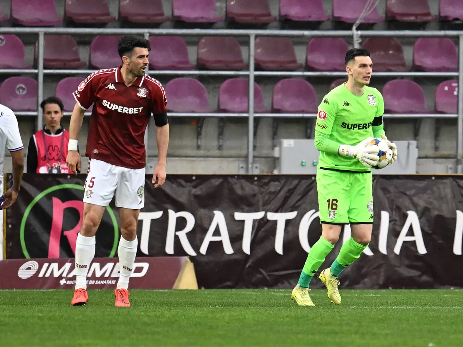 Fotbalistii rapidisti Alexandru Stefan Pascanu si Marian Mihai Aioani in meciul de fotbal dintre Rapid Bucuresti si FC Arges, din cadrul Play off-ului Superligii Superbet, desfasurat pe Superbet Arena-Giulesti din Bucuresti, luni 13 aprilie 2026. © FOTO:Razvan Pasarica/SPORT PICTURES
