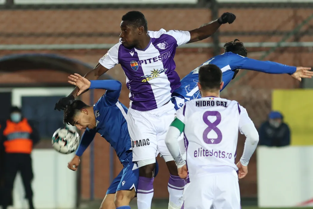 Alexandru Mihai Ilie si Cephas Malele in meciul de fotbal dintre FC Voluntari si FC Arges, contand pentru Liga 1 Casa Pariurilor, desfasurat fara spectatori pe Stadionul Anghel Iordanescu din Voluntari, vineri 19 februarie 2021. © FOTO:Gheorghe Fluster/SPORT PICTURES