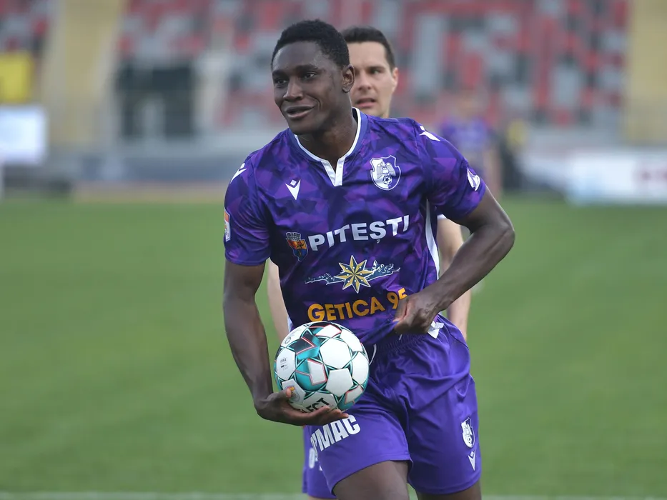 Cephas Malele se bucura dupa un gol marcat in meciul de fotbal dintre Astra Giurgiu si FC Arges, contand pentru Play-out-ul Ligii 1 Casa Pariurilor, desfasurat fara spectatori pe Stadionul Marin Anastasovici din Giurgiu, sambata 24 aprilie 2021. © FOTO:Razvan Pasarica/SPORT PICTURES