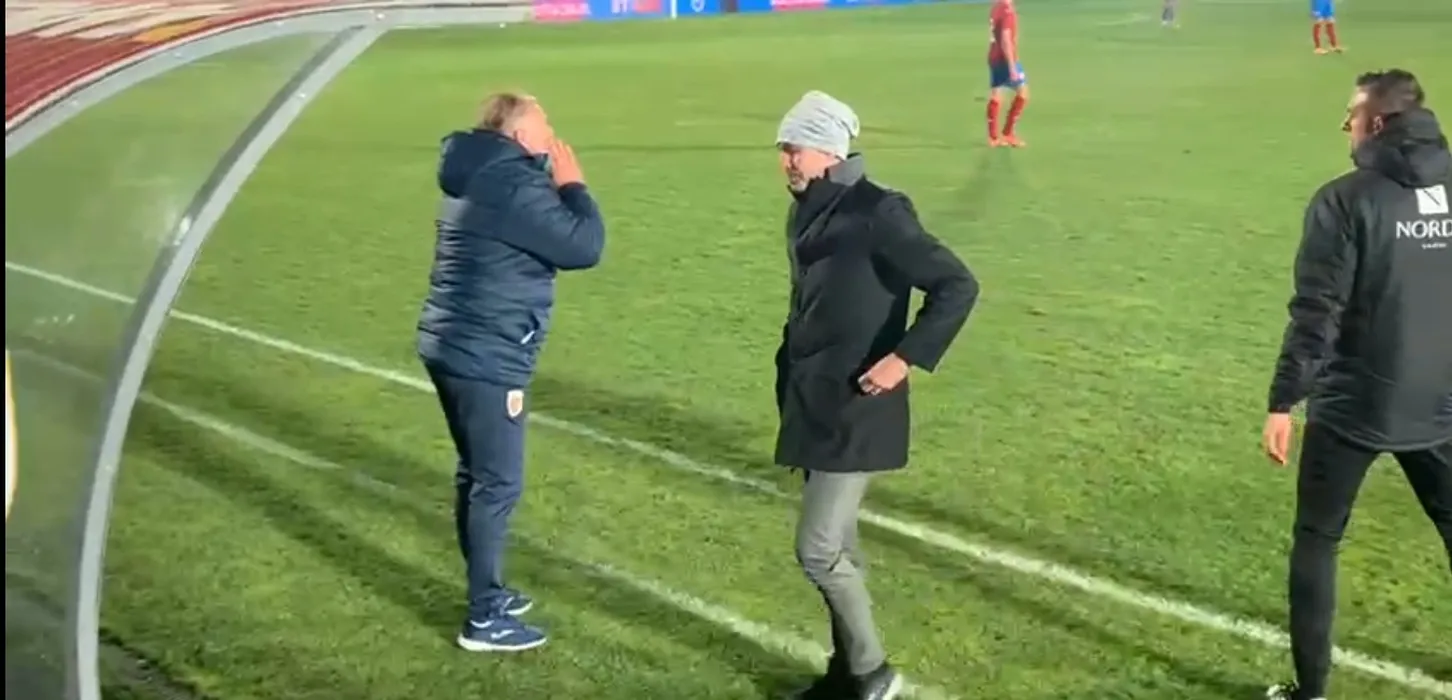 Cum l-a felicitat selecționerul Bogdan Lobonț pe Eduard Rădăslăvescu după eurogolul reușit în poarta Cehiei U20! Asta da încurajare | FOTO