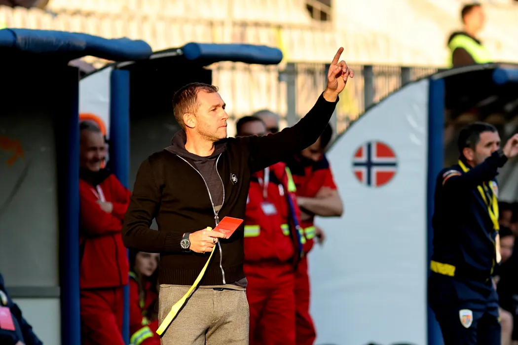 Bogdan Lobont reactioneaza in timpul partidei amicale de fotbal dintre reprezentativele de tineret U20 ale Romaniei (echipament alb-galben) si Norvegiei, joi, 24 martie 2022, la Ploiesti. GEORGE FLUSTER / MEDIAFAX FOTO