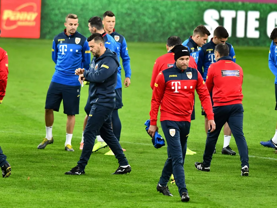 Fotbalistii Romaniei alaturi de Cosmin Contra si Bogdan Lobont la antrenamentul oficial de dinaintea meciului cu Suedia, contand pentru Preliminariile Campionatului European 2020, desfasurat pe Arena Nationala din Bucuresti, joi 14 noiembrie 2019. © FOTO:Razvan Pasarica/SPORT PICTURES