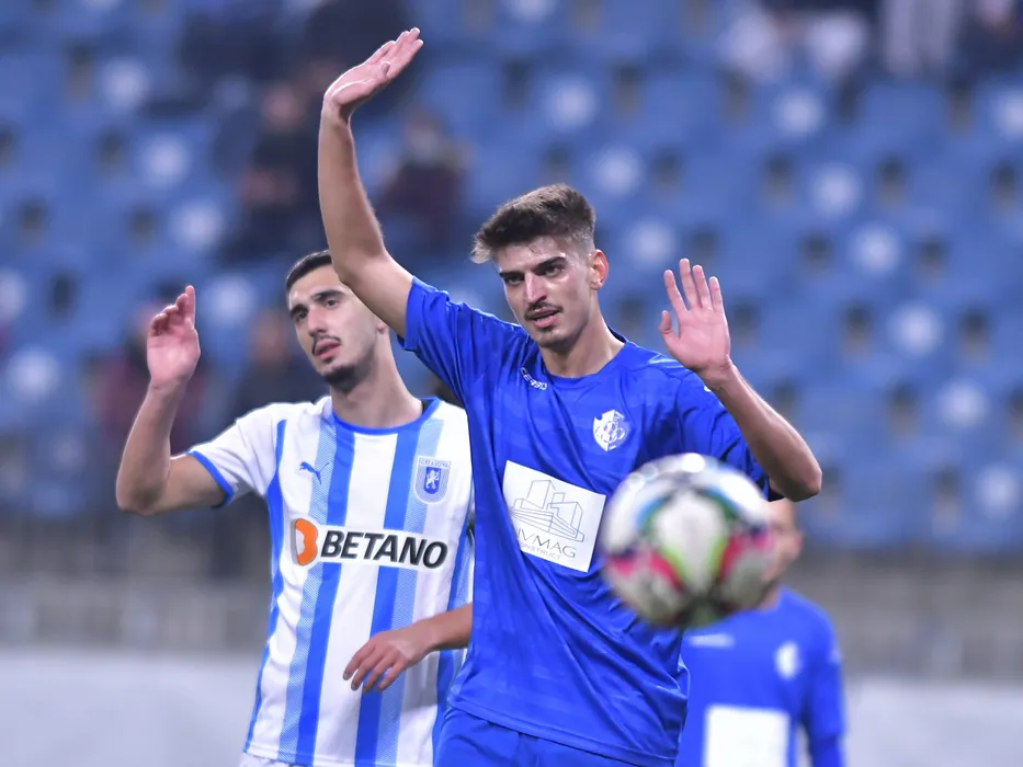 Andrei Virgil Ivan si Eduard Dina in meciul de fotbal dintre Universitatea Craiova si ACSO Filiasi, contand pentru Cupa Romaniei, desfasurat pe Stadionul Ion Oblemenco din Craiova, joi 2 decembrie 2021. © FOTO:Razvan Pasarica/SPORT PICTURES