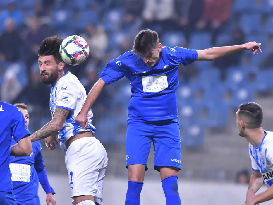 Paul Papp si Eduard Dina in meciul de fotbal dintre Universitatea Craiova si ACSO Filiasi, contand pentru Cupa Romaniei, desfasurat pe Stadionul Ion Oblemenco din Craiova, joi 2 decembrie 2021. © FOTO:Razvan Pasarica/SPORT PICTURES