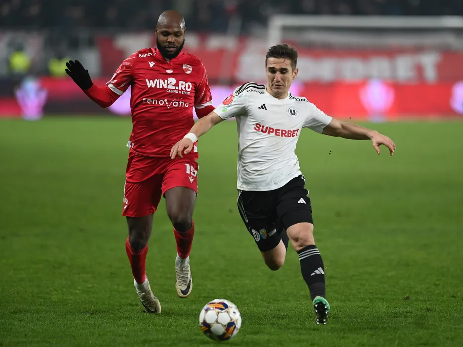 Hakim Djamel Abdallah si Bogdan Ilie Vatajelu in meciul de fotbal dintre Dinamo Bucuresti si Universitatea Cluj, din cadrul Superligii Superbet, desfasurat pe Stadionul National Arcul de Triumf din Bucuresti, luni 11 decembrie 2023. © FOTO:Razvan Pasarica/SPORT PICTURES