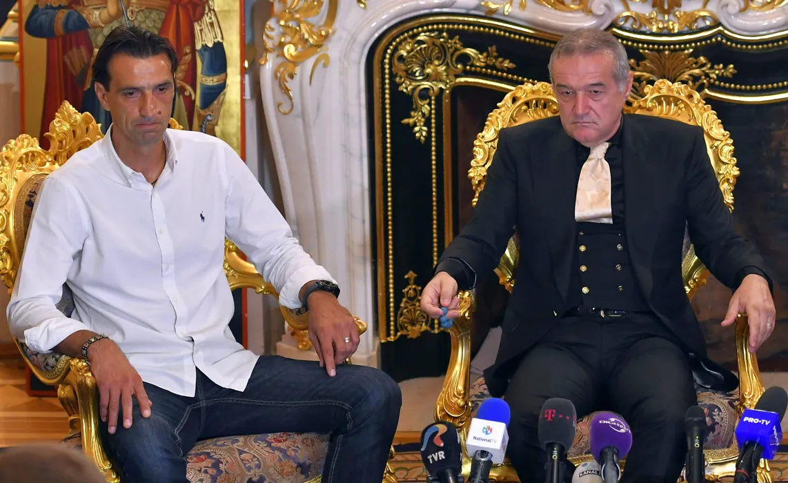 Bogdan Arges Vintila si Gigi Becali la o conferinta de presa, desfasurata la sediul din Aleea Alexandru din Bucuresti, vineri 23 august 2019. © FOTO:Razvan Pasarica/SPORT PICTURES