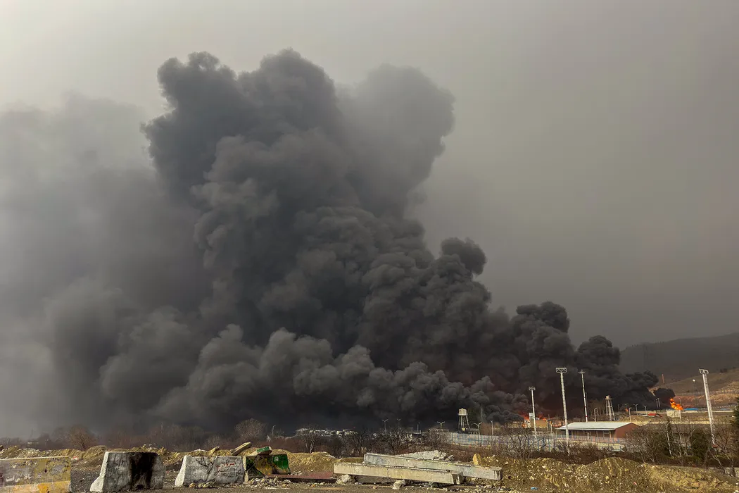 Mediafax Foto Smoke and flames rise at the site of airstrikes on an oil depot in Tehran on March 8, 2026. The United States and Israel launched strikes against Iran on February 28, prompting Iranian retaliation with missile attacks across the region and intensifying concerns about disruption to global energy and transport. Photo by Majid/Middle East Images/ABACAPRESS.COM