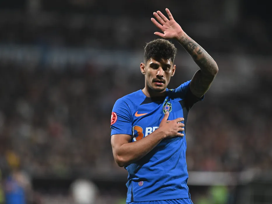 Florinel Teodor Coman saluta galeria în meciul de fotbal dintre CFR Cluj si FCSB, contând pentru Play off-ul Superligii Superbet, desfășurat pe Stadionul Dr. Constantin Raduescu din Cluj Napoca, duminica 14 aprilie 2024. © FOTO: Răzvan Pasarica/SPORT PICTURES
