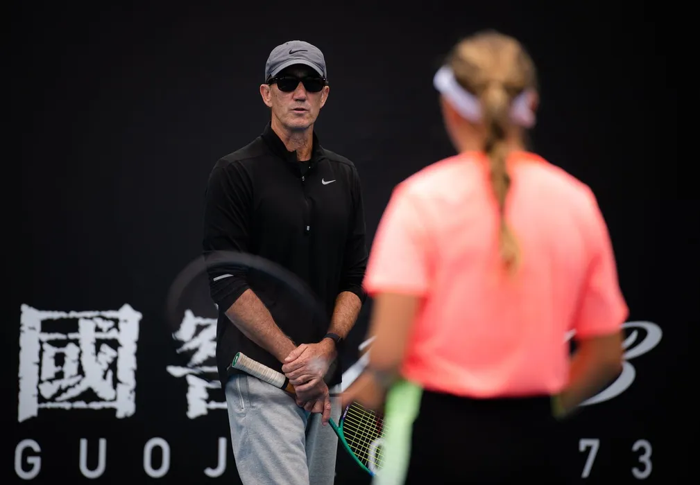 Darren Cahill works with Amanda Anisimova during practice ahead of the 2022 Australian Open Grand Slam tennis tournament