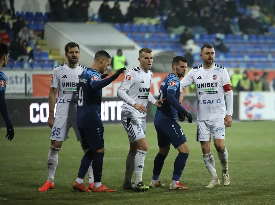 Andrei George Miron, Andrei Sava, Riad Suta, Stefan Visic si Mykola Kovtaliuk in meciul de fotbal dintre FC Botosani si FC Metaloglobus Bucuresti, contand pentru Superliga Superbet, desfasurat pe Stadionul Municipal din Botosani, duminica 8 februarie 2026. © FOTO:Ionut Tabultoc/SPORT PICTURES