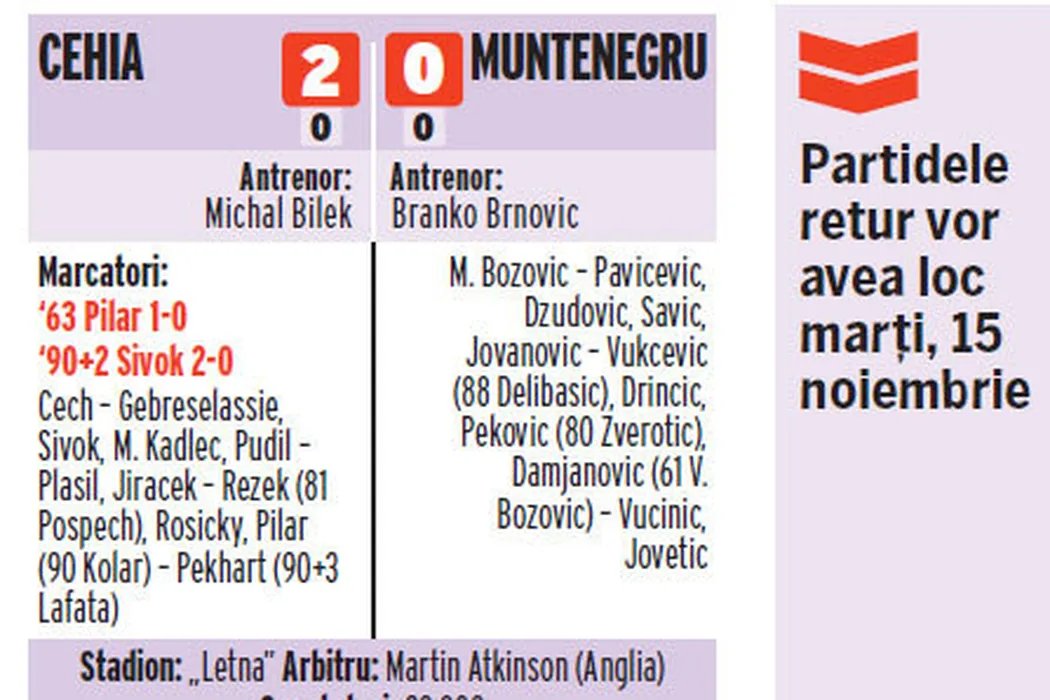 Bozovic, departe de Euro!** Cehia – Muntenegru 2-0