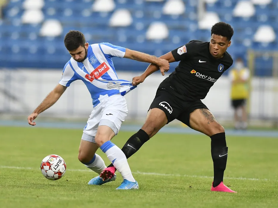 Ovidiu Horsia si Bradley de Nooijer in meciul de fotbal dintre CSM Politehnica Iasi si FC Viitorul Constanta, contand pentru play-off-ul Ligii 1 Casa Pariurilor, disputat fara spectatori pe Stadionul Emil Alexandrescu din Iasi, luni 20 iulie 2020. © FOTO:Razvan Pasarica/SPORT PICTURES