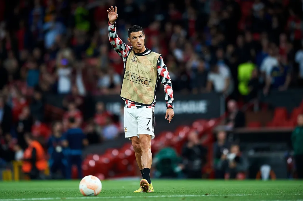 Cristiano Ronaldo Centre-Forward of Manchester United and Portugal during the warm-up before prior the UEFA Europa League group E match between Manchester United and Real Sociedad at Old Trafford on September 8, 2022 in Manchester, United Kingdom.