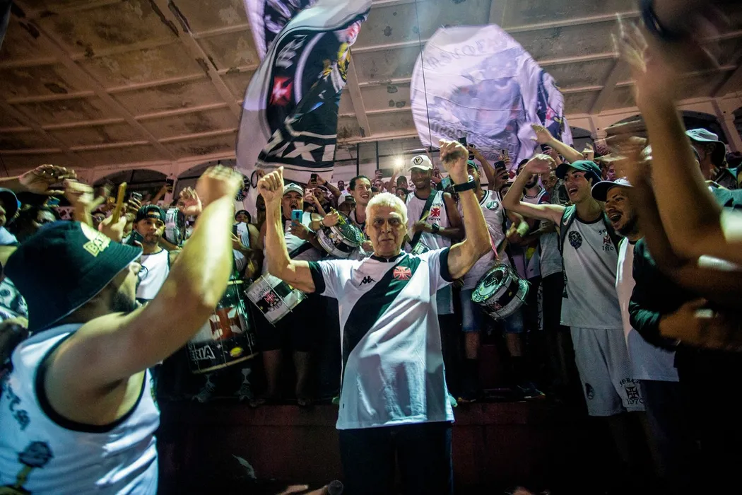 This handout picture released by Brazilian football team Vasco da Gama shows late Brazilian football player Roberto Dinamite (C) reacting during the inauguration of his statue at the Sao January stadium in Rio de Janeiro, Brazil, on April 28, 2022. Brazilian footballer Roberto Dinamite, top scorer in the history of the Brazilian championship, died on Sunday January 8, 2023 at the age of 68, following bowel cancer, announced the club of Vasco da Gama, in which he was the absolute idol.,Image: 748398591, License: Rights-managed, Restrictions: RESTRICTED TO EDITORIAL USE - MANDATORY CREDIT "AFP PHOTO / VASCO DA GAMA / DANIEL RAMALHO" - NO MARKETING NO ADVERTISING CAMPAIGNS - DISTRIBUTED AS A SERVICE TO CLIENTS, ***