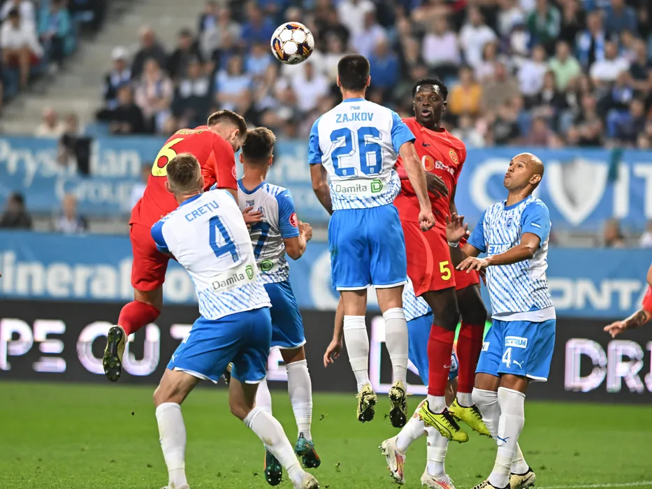Joyskim Aurelien Dawa Tchakonte si Raul Michel Melo Da Silva în meciul de fotbal dintre Universitatea Craiova si FCSB, contând pentru Play off-ul Superligii Superbet, desfășurat pe Stadionul Ion Oblemenco din Craiova, luni 6 mai 2024. © FOTO: Răzvan PĂSĂRICĂ/SPORT PICTURES