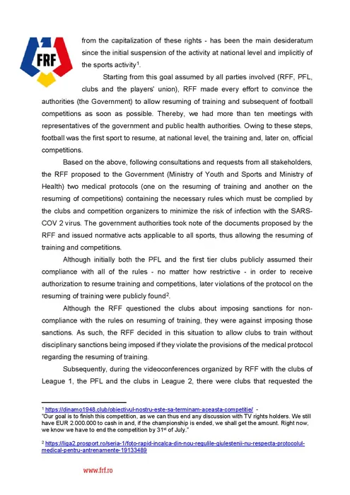 ProSport a intrat în posesia scrisorii FRF către UEFA, ca răspuns la acuzațiile LPF: „Informații neconforme realității, menite să inducă în eroare” | FOTO DOCUMENT