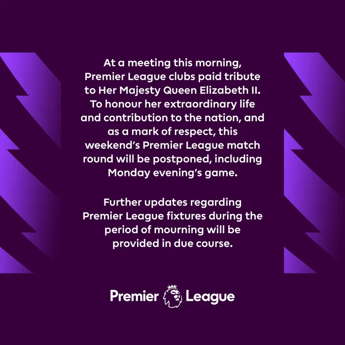 Toate partidele din acest weekend care urmau să se dispute în Premier League au fost amânate după moartea reginei Elisabeta a II-a a Marii Britanii!
