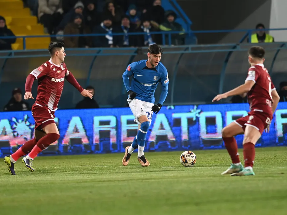 Cristian Ionut Sapunaru si Adrian Mazilu in meciul de fotbal dintre Farul Constanta si Rapid Bucuresti, contand pentru Superliga Superbet, desfasurat pe Stadionul central al Academiei Gheorghe Hagi din Ovidiu, miercuri 20 decembrie 2023. © FOTO:Razvan Pasarica/SPORT PICTURES