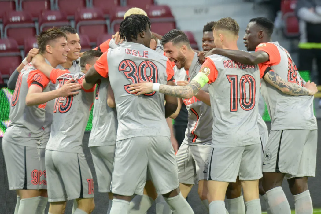 Fotbalistii ros-albastrii se bucura dupa un gol marcat de Alexandru Constantin Stoian in meciul de fotbal dintre FC CFR 1907 Cluj si FCSB, contand pentru Superliga Superbet Play-Off, desfasurat pe Stadionul Dr.Constantin Radulescu din Cluj-Napoca, vineri 23 mai 2025. © FOTO: Alexandra Cristina Grigorescu/SPORT PICTURES