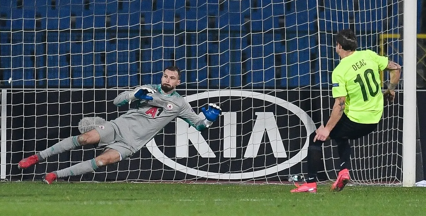 CFR Cluj's Romanian midfielder Ciprian Deac scores a goal during the UEFA Europa League Group A first-leg football match between CSKA Sofia and CFR Cluj at the Bulgarskia Armia in Sofia, on October 22, 2020.,Image: 565066929, License: Rights-managed, Restrictions: , Model Release: no