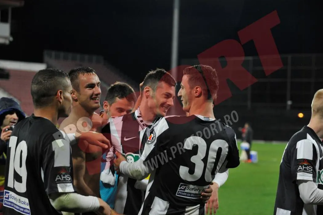 Bucurie imensă pentru fanii lui „U” după victoria cu rivala CFR. FOTO: Ultrașii au intrat pe teren și i-au îmbrățișat pe jucători
