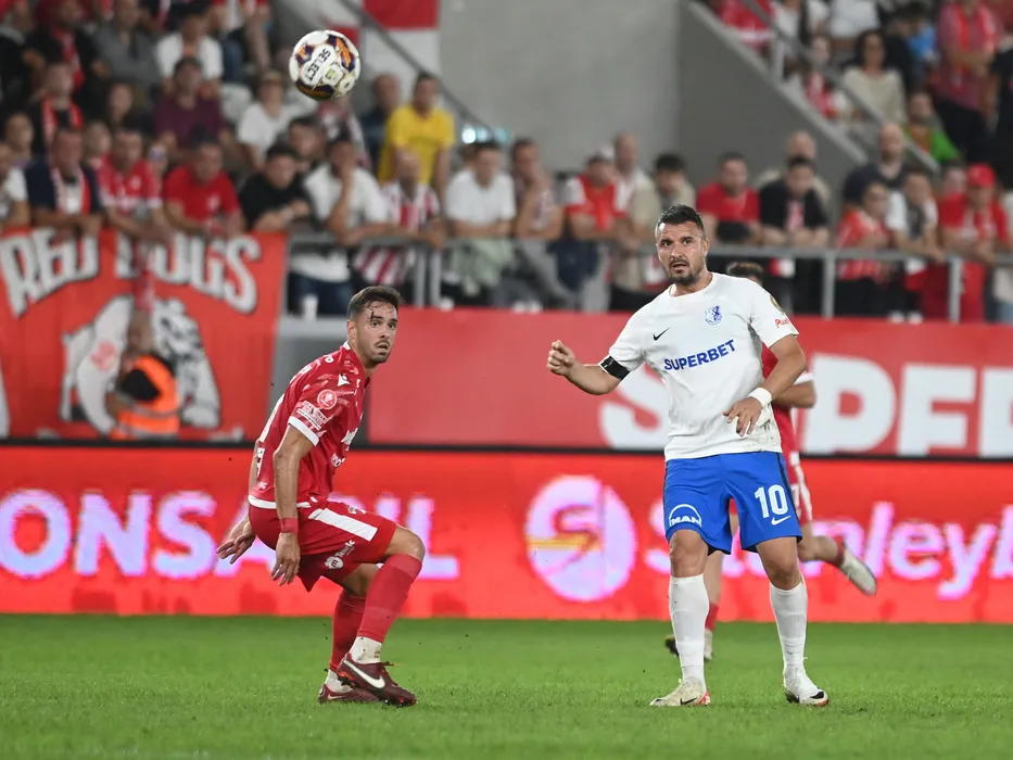 Gorka Larrucea Arrien si Constantin Valentin Budescu in meciul de fotbal dintre Dinamo Bucuresti si Farul Constanta, din cadrul Superligii Superbet, desfasurat pe Stadionul National Arcul de Triumf din Bucuresti, vineri 22 septembrie 2023. © FOTO:Razvan Pasarica/SPORT PICTURES