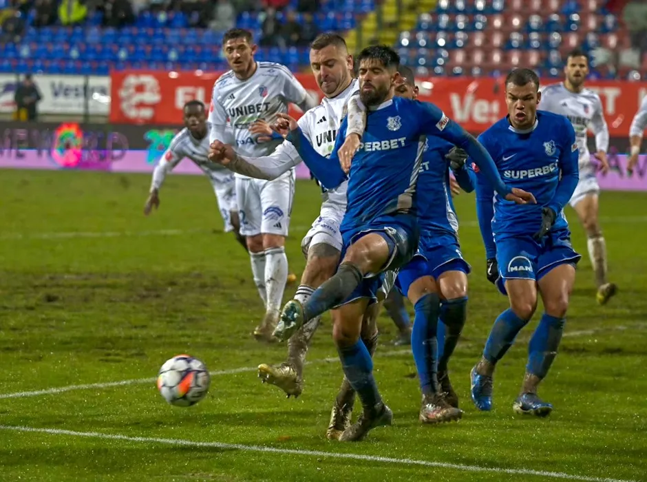 Ionuț Daniel Vână, Gustavo Henrique Marins Silva și Andrei George Miron, Alin Ioan Șeroni în meciul de fotbal dintre FC Botoșani și FC Farul Constanța, contând pentru Superliga Superbet, desfășurat pe Stadionul Municipal din Botoșani, vineri 29 noiembrie 2024. © FOTO: Tudi/SPORT PICTURES