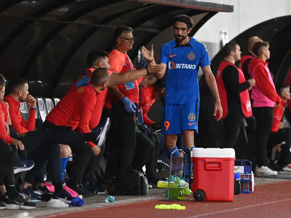 Andrea Compagno este felicitat la iesirea din teren din meciul de fotbal dintre FC Hermannstadt si FCSB, contand pentru Superliga Superbet, desfasurat pe Stadionul Municipal din Sibiu, joi 21 septembrie 2023. © FOTO:Razvan Pasarica/SPORT PICTURES